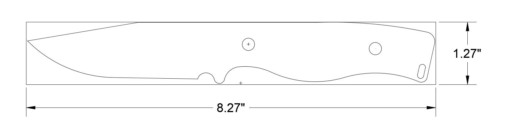 Take your knife blank or scale drawing and draw a rectangle around it. Ensure the rectangle is the smallest possible that the knife can fit into. Also, make sure it is a rectangle with four right angles and not a trapezoid.